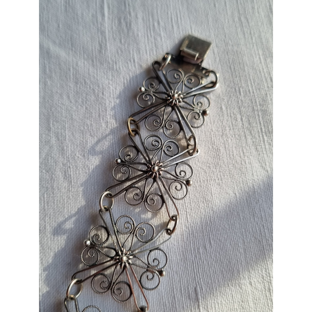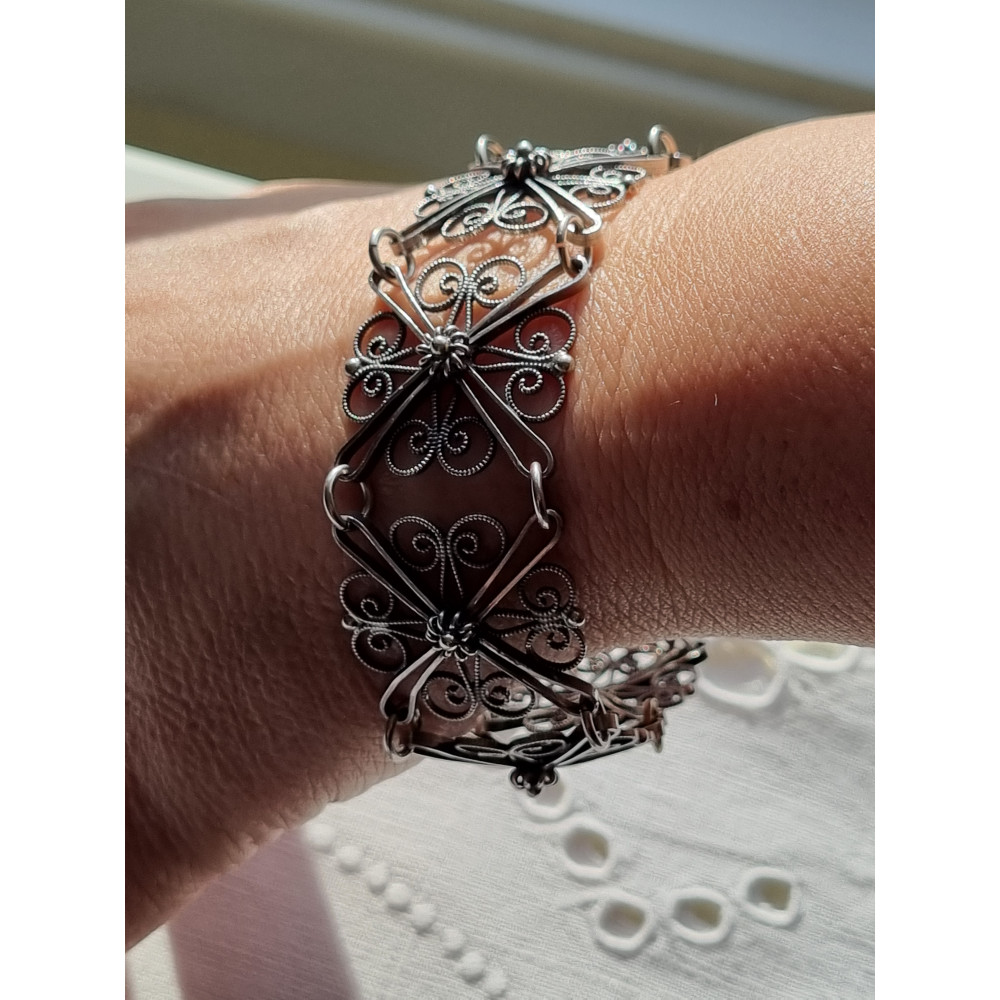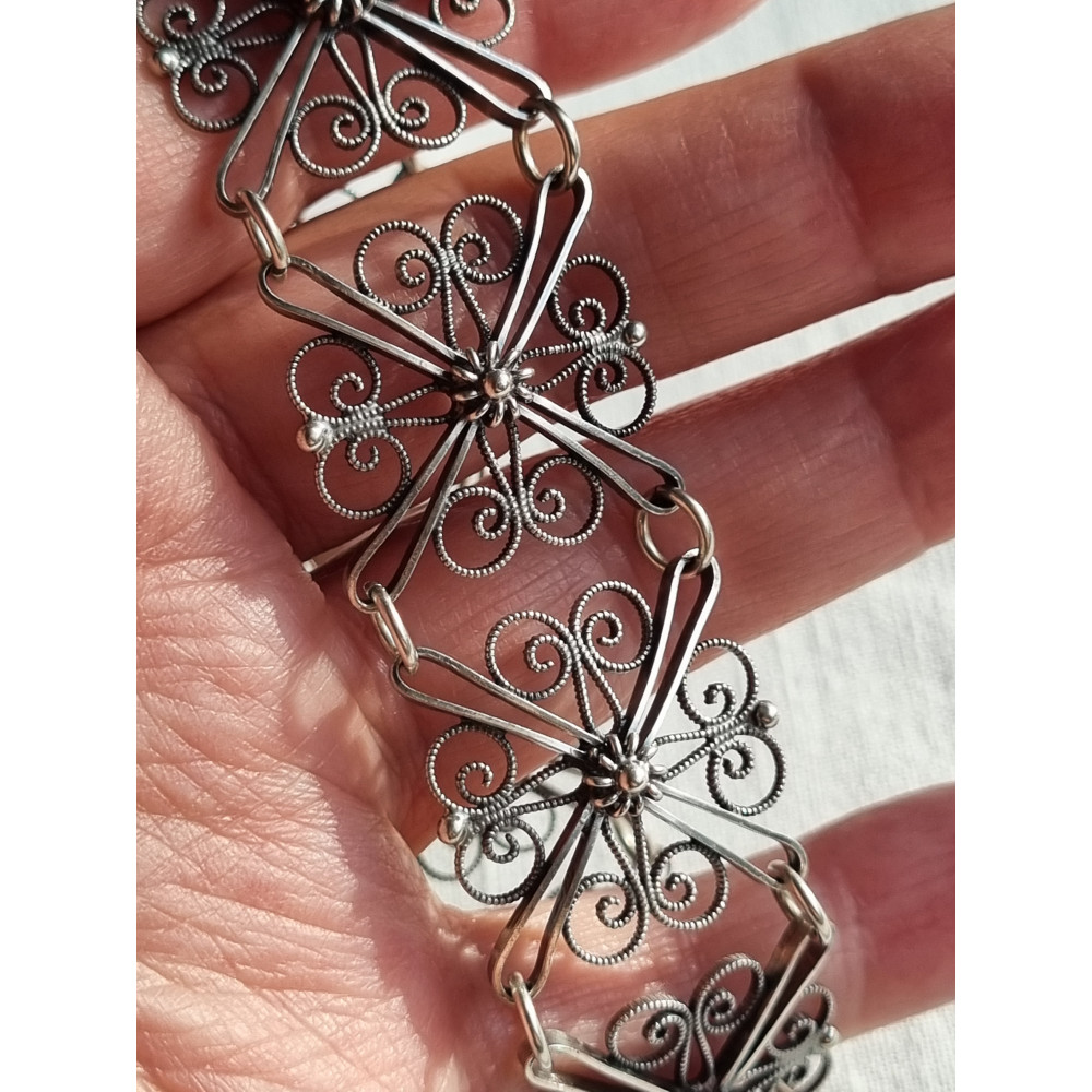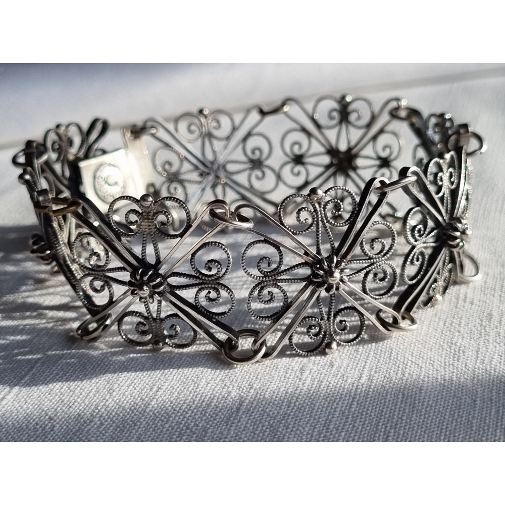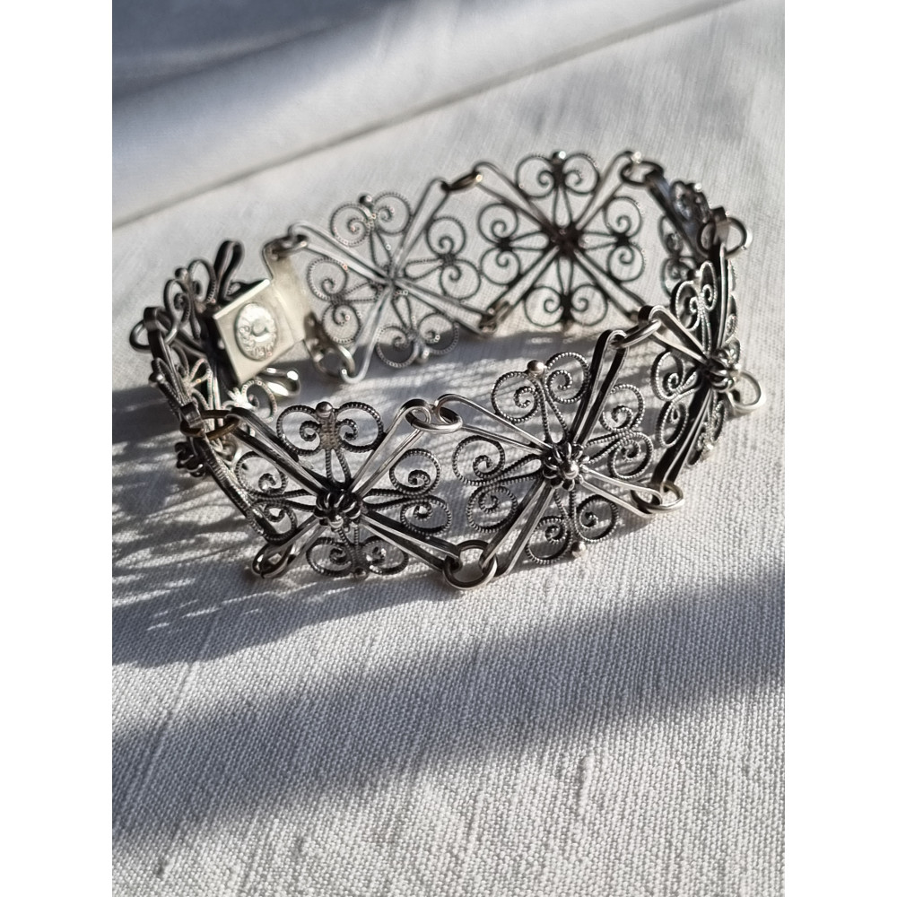 Fantastisk vakkert sølv armbånd, sølv armlenke, med 8 brede sølv filigran smykkedeler rundt.
