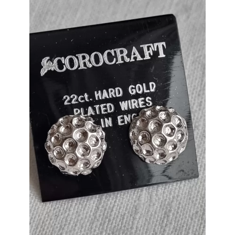 Nydelig par ubrukte øredobber fra Corocraft. Flotte halvkuler i 22 ct hvitt gull belagt metall. Antatt fra slutten 1990-tallet.