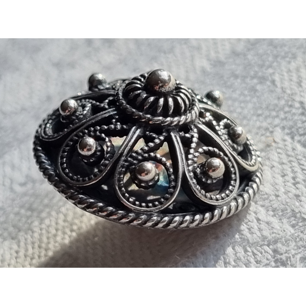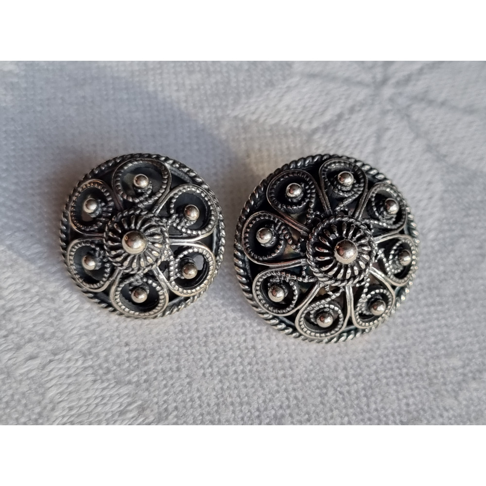 Flotte og solide bunads knapper med håndlaget filigran design med kruse i midten. Alle er godt stemplet på baksiden med hornet til Sylvsmidja og 830S. Prisen er per stk.