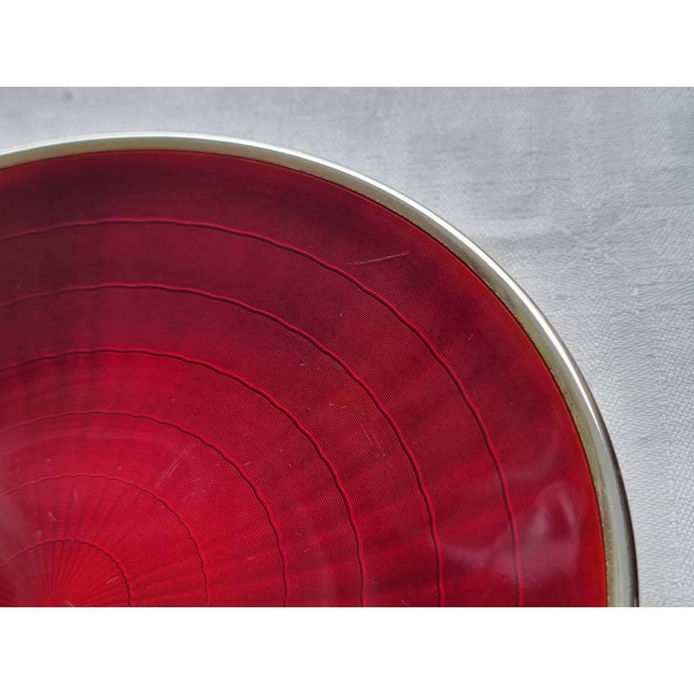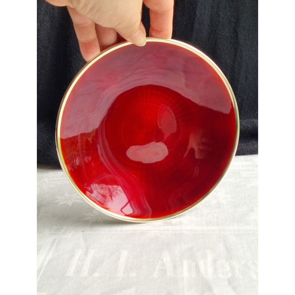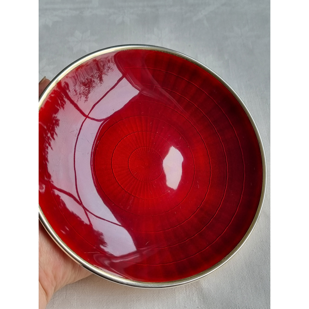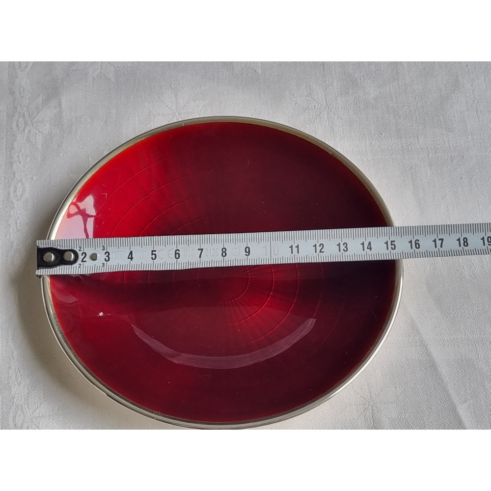 Sjelden sølv emalje skål, fat, med vakker dyp rød emalje fra D-A, i 925S.