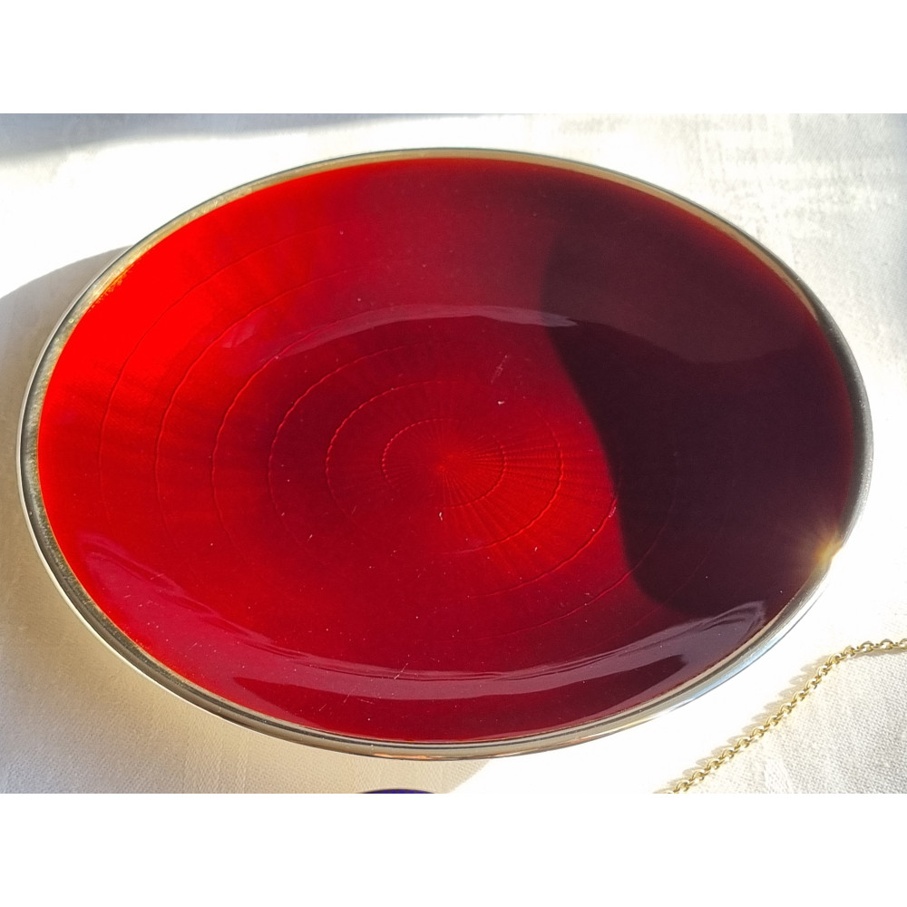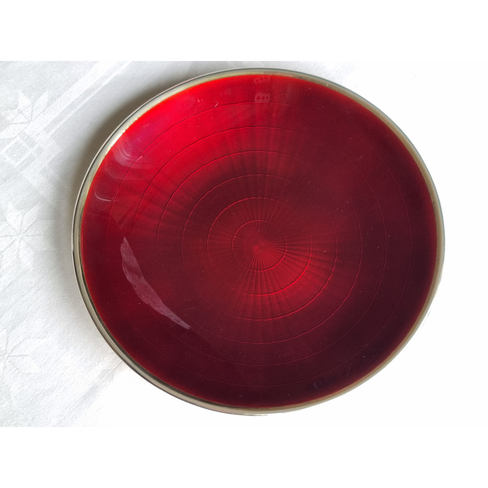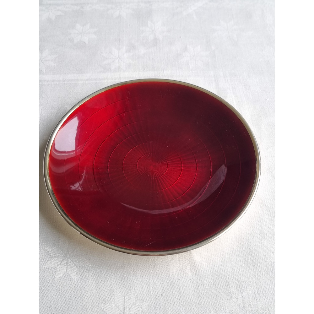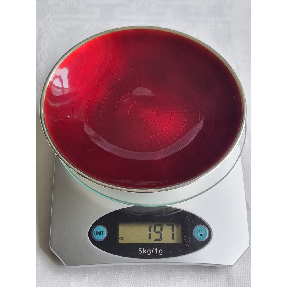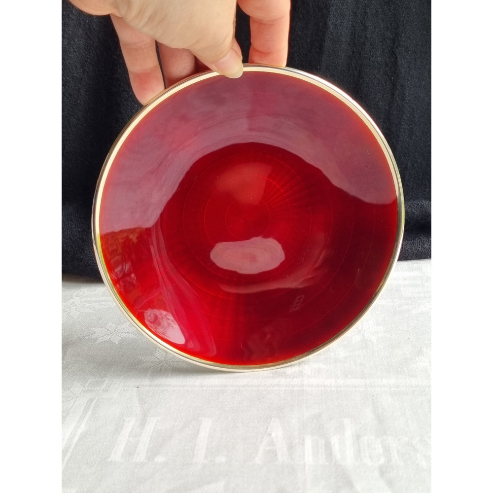 Sjelden sølv emalje skål, fat, med vakker dyp rød emalje fra D-A, i 925S.