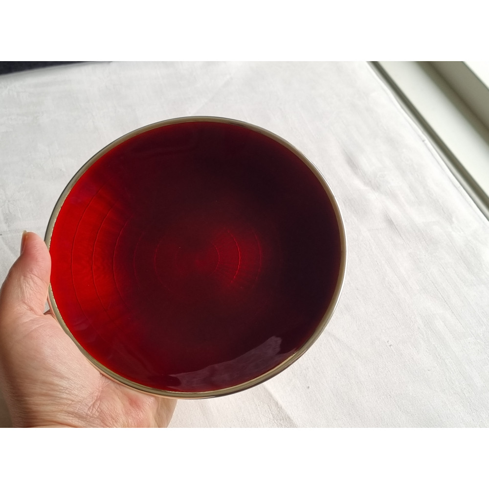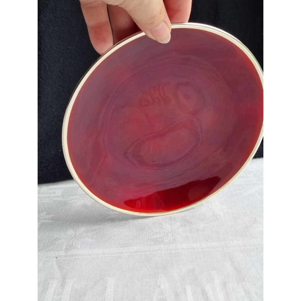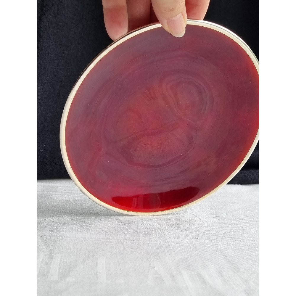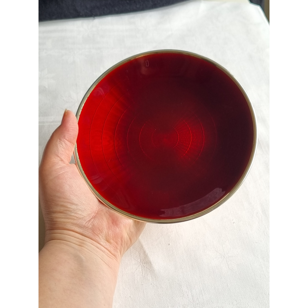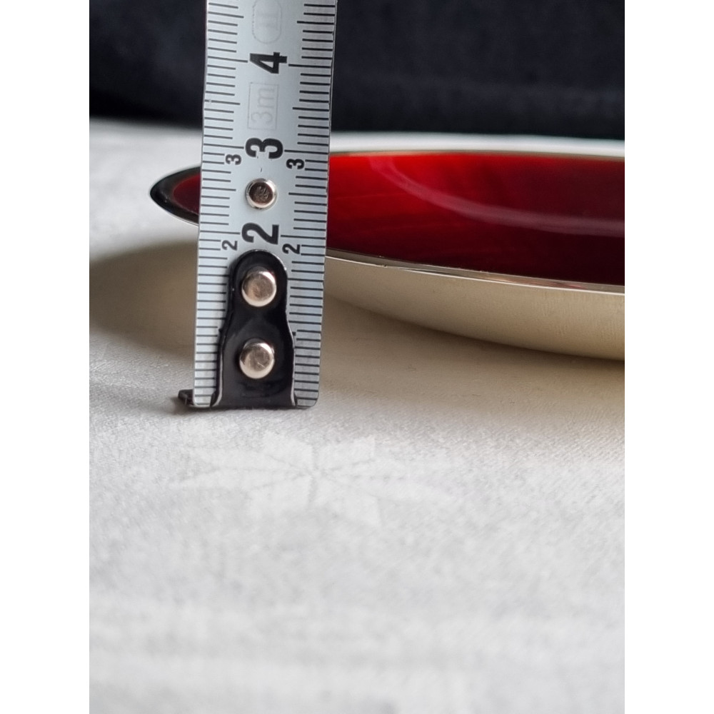 Vakker dyp rød emalje fat på 925 sølv skål, mellomstort fat. Men fatet er sjeldent.