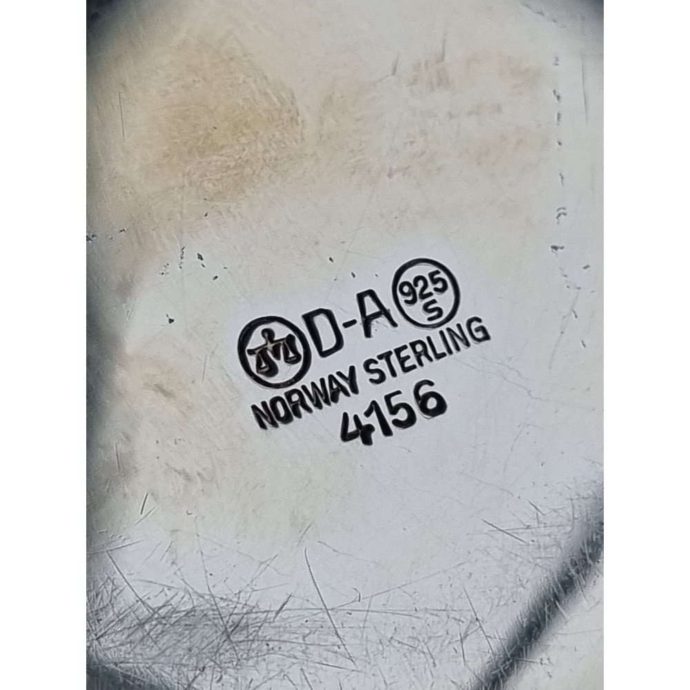 Gullforgylt bakside og kant. Stemplet under vekten D-A (for David Andersen) og 925S, NORWAY-STERLING.