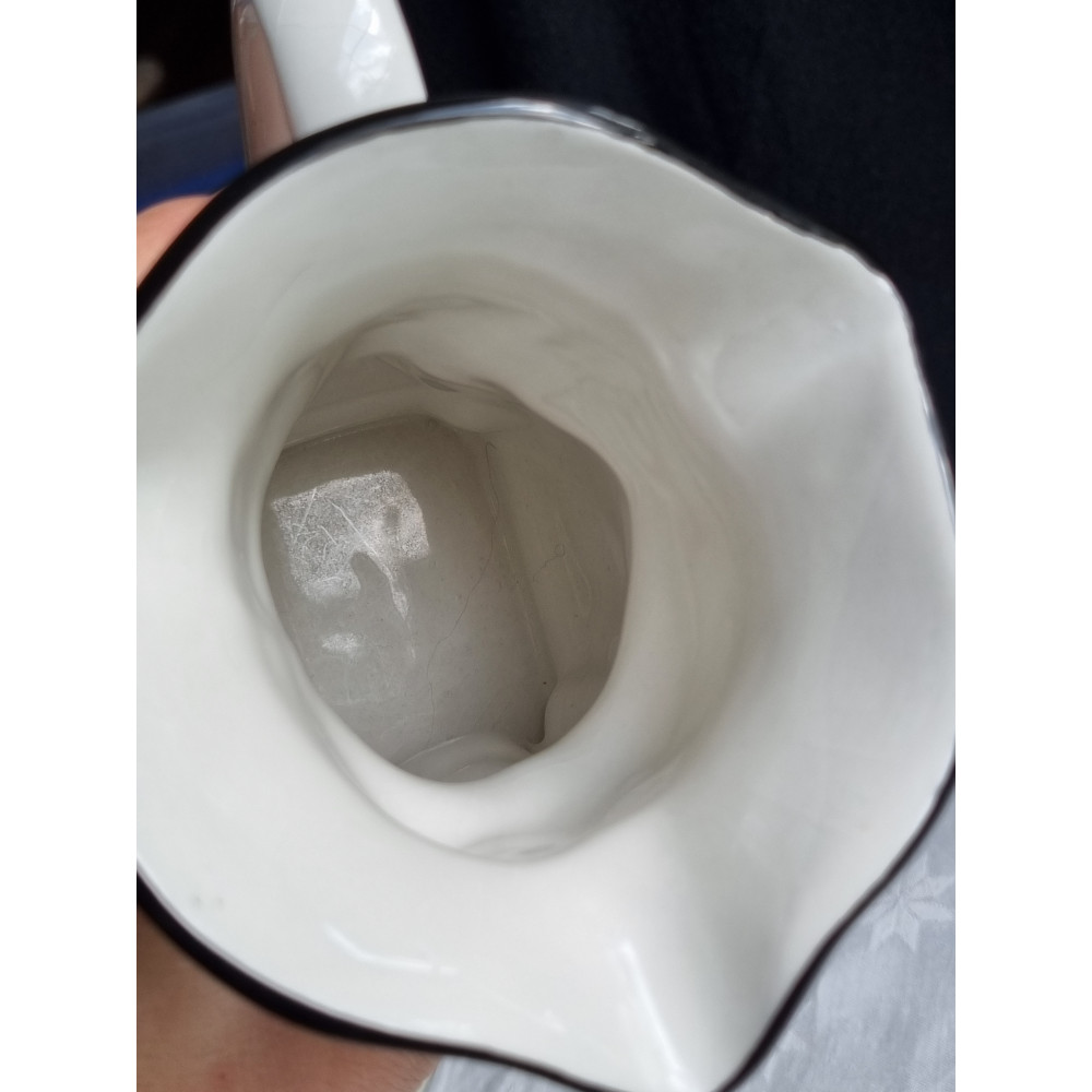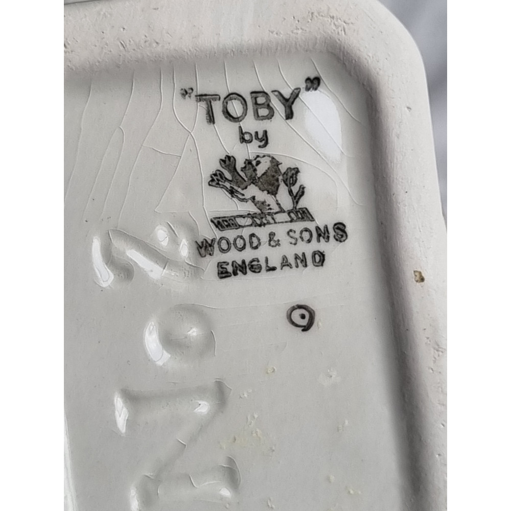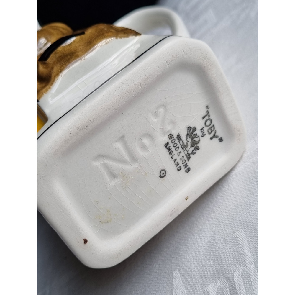 Denne vintage Toby-kannen fra Wood & Sons har et håndmalt flerfarget design i porselenet med glasert overflate. Men en høyde på over 15 cm (ca 15,4 cm), er den godt egnet for å brukes som en fløtemugge eller mugge til alle anledninger. Kannen er en del av Toby Jugs-kolleksjonen og har et mennesketema, med modellnavnet Jug Mug. Denne lille koppen er laget i Storbritannia og er perfekt for samlere av dekorative gjenstander. Den er et fint tillegg til enhver samling av skulpturer og figurer, og vil garantert være en samtalestarter. Bruk den til å servere fløte eller melk, og nyt det unike Toby Jug-designet.
