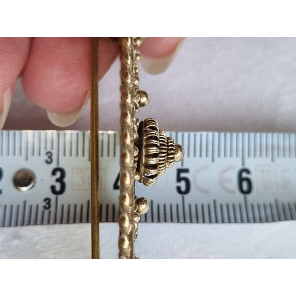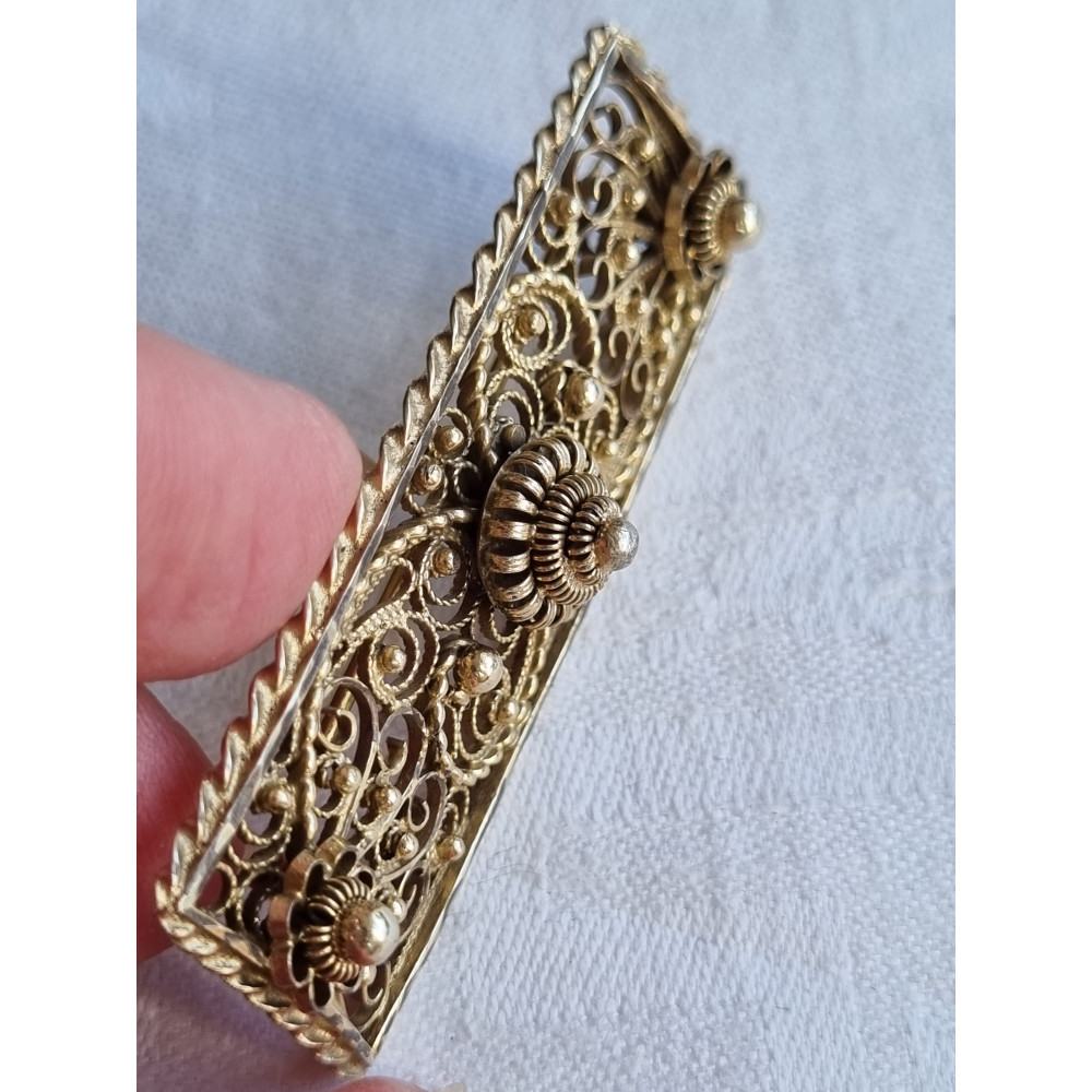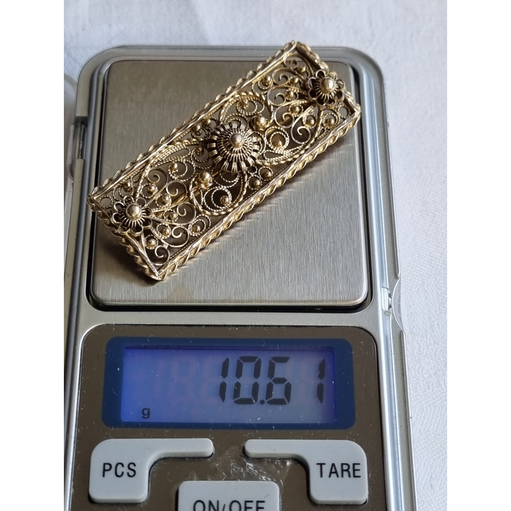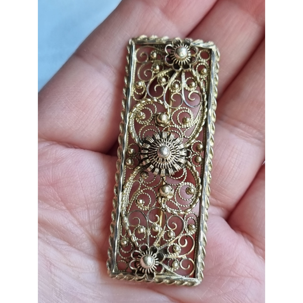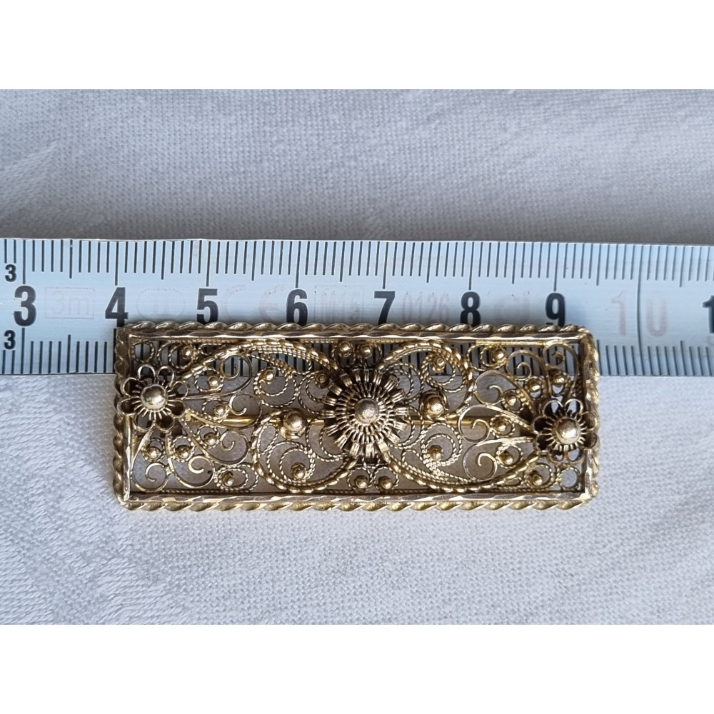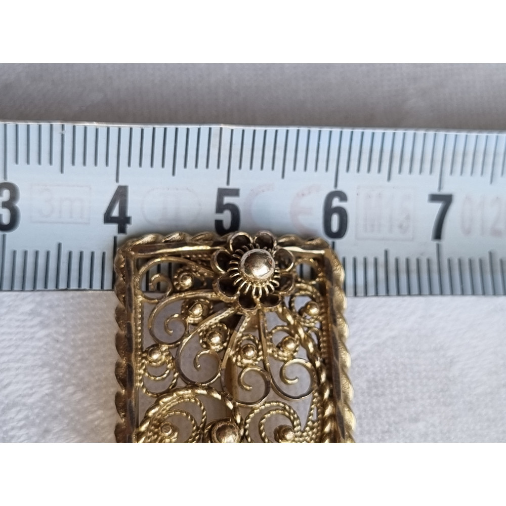 Smykket er firkantet og avlangt, måler ca 5,5 cm på det lengste og ca 2,1 cm andre veien. Vekt 10,6 gram.