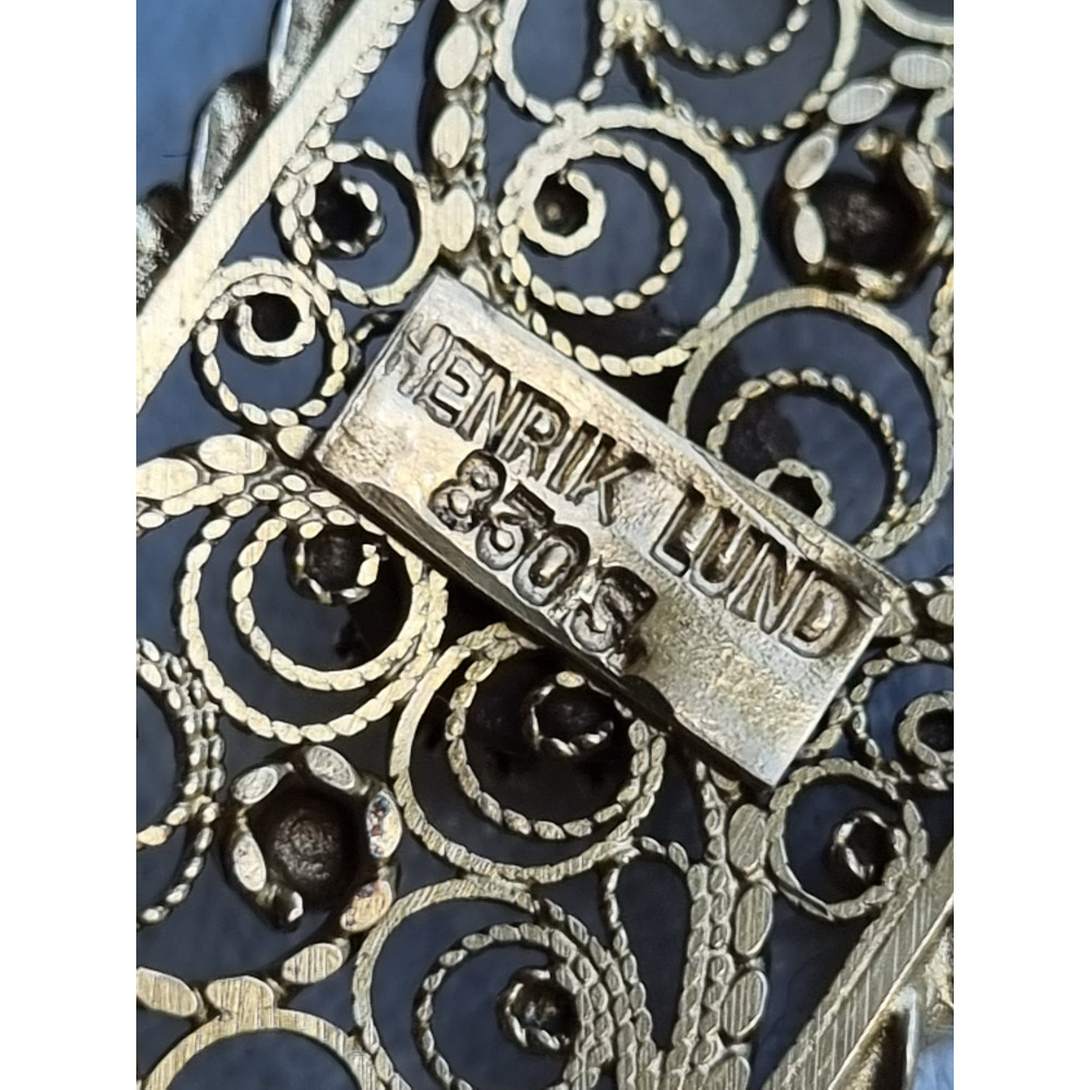 Nydelig hals sølje i fantastisk filigran arbeid, håndlaget smykke, med nål på baksiden. Godt stemplet på baksiden "HENRIK LUND 830 S."