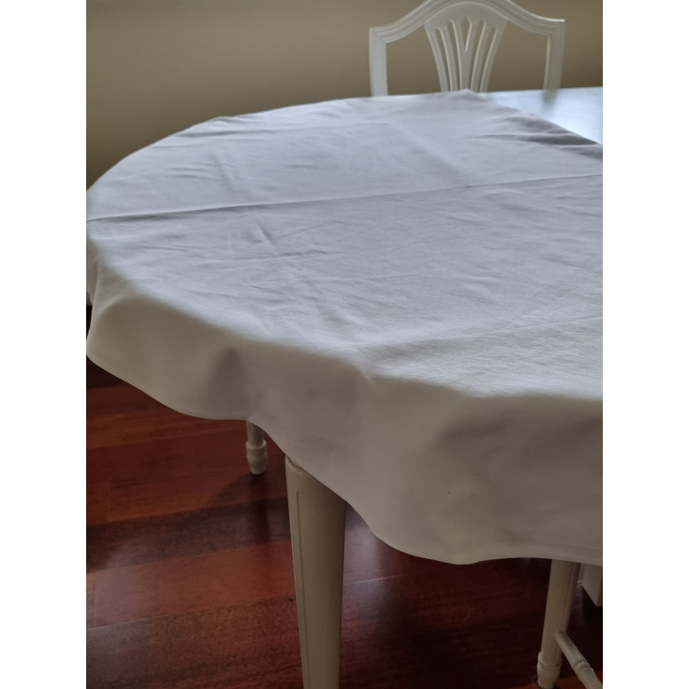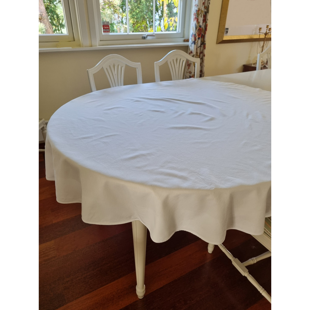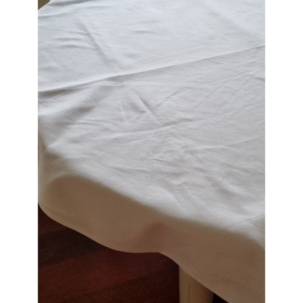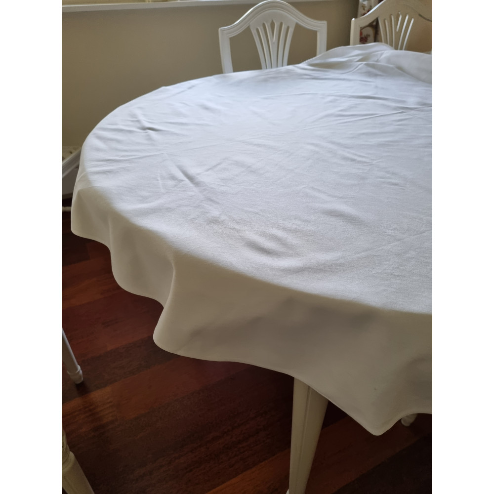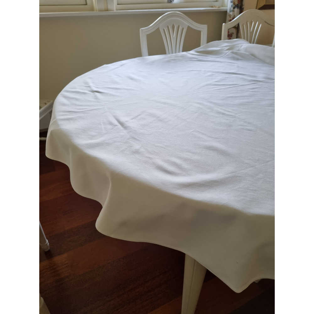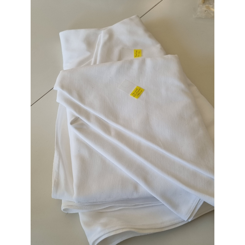 Flott hvit bomulls duk, antagelig brukt i restaurant. Meget flott og solid. Ikke slitt, og man ser ikke gjennom duken.