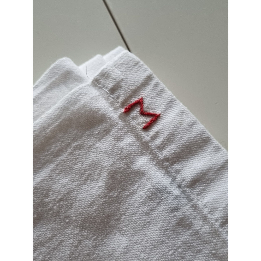 Stoffet er fargeekte, enkel å vaske, enkel å stryke. En "M" er brodert i ett hjørnet. Dukene er kjøpt på auksjon, nå selger vi dem ut!