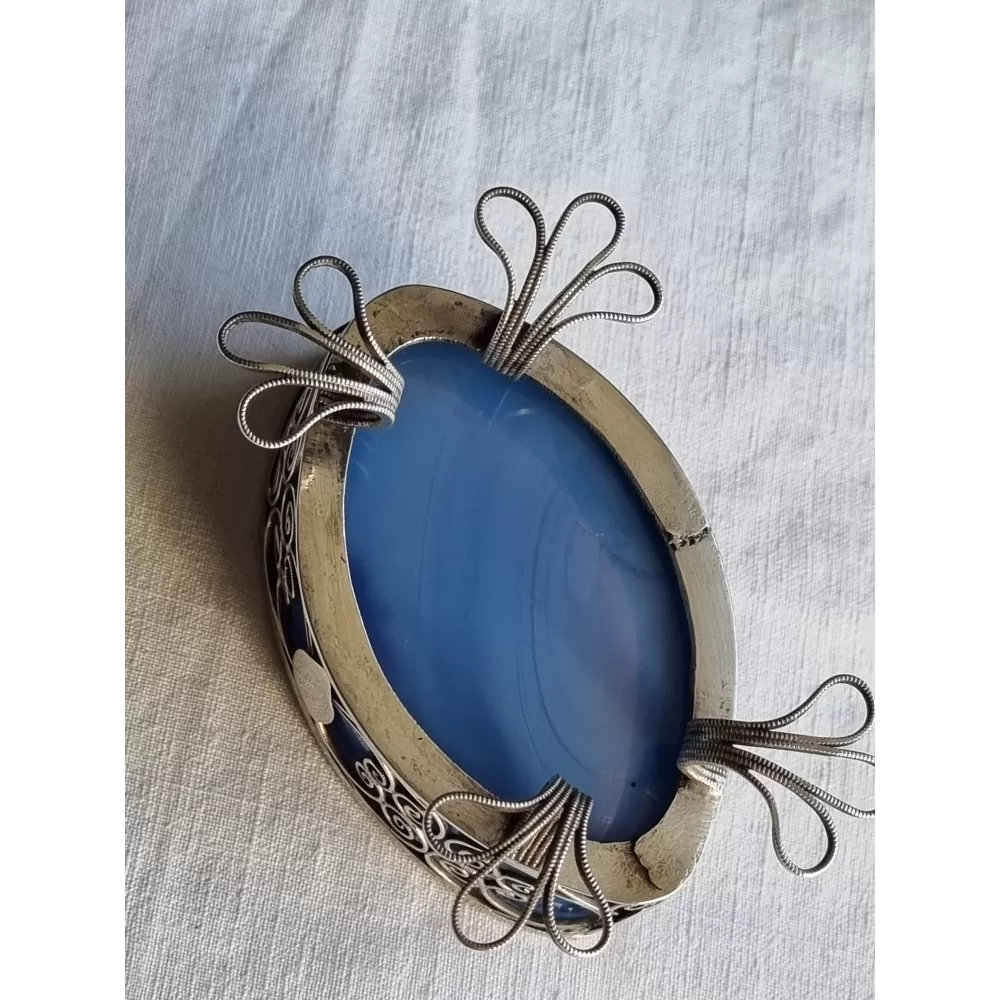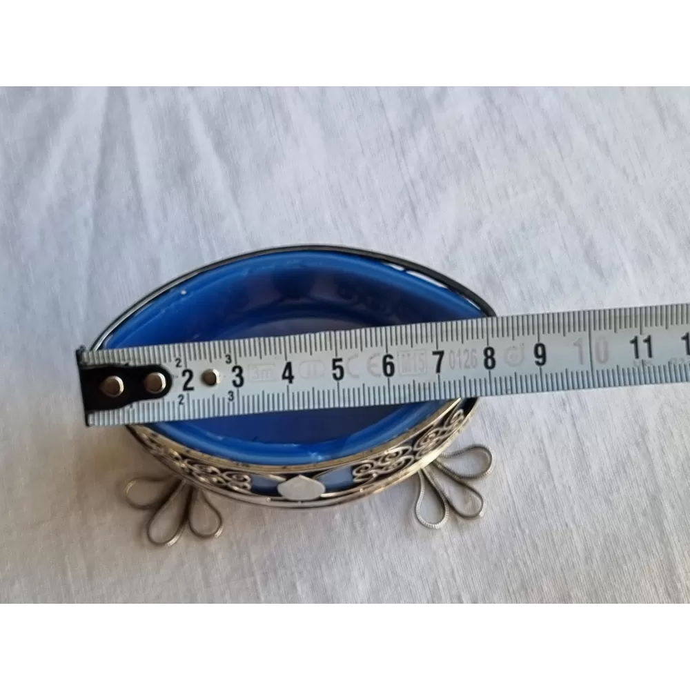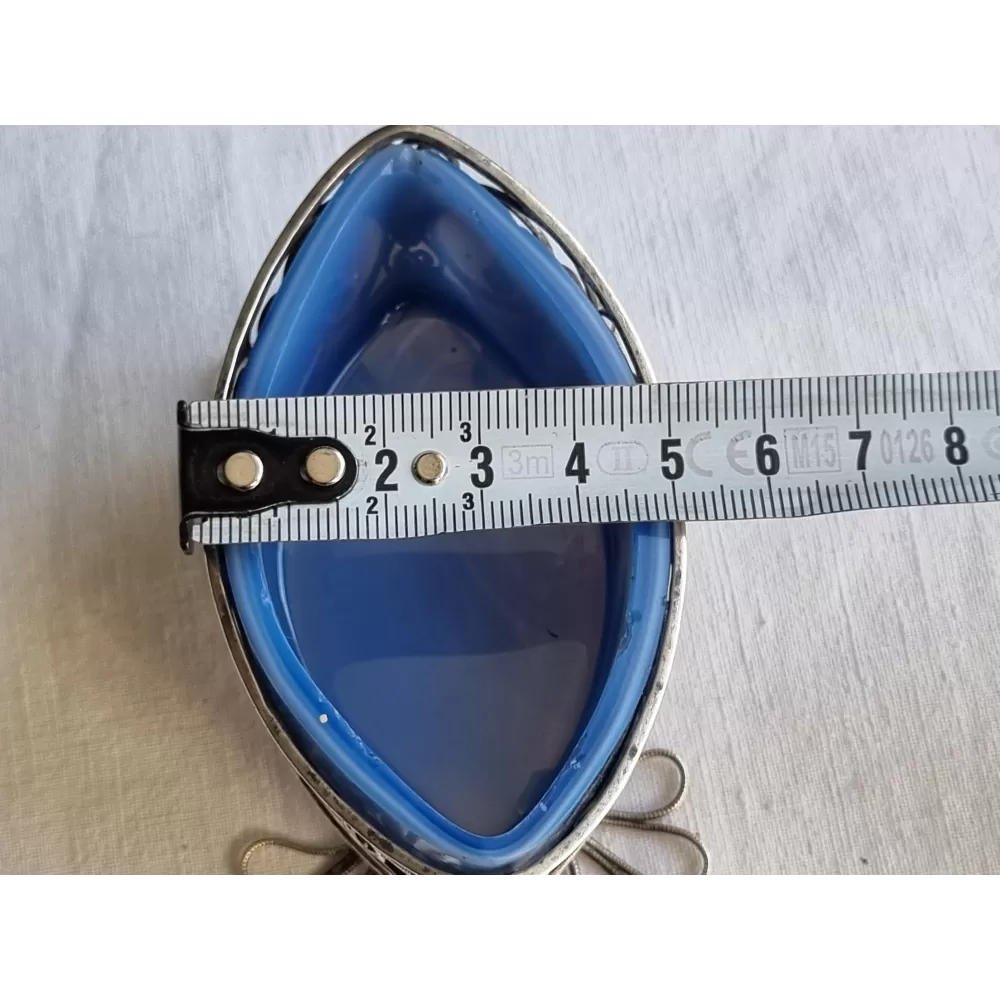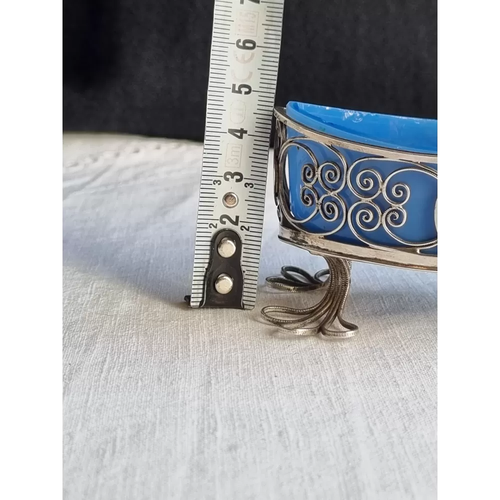 Original blått opalin glass, som passer perfekt inn i sølv formen.