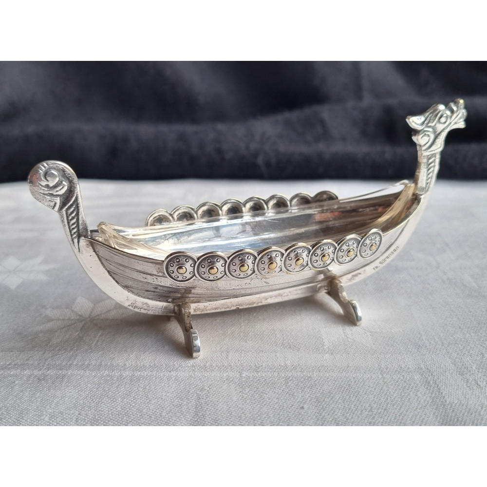 Glassinnsats til vikingskipet følger med. Her er glasset brutt noe foran og bak, men er ellers helt og flott!
