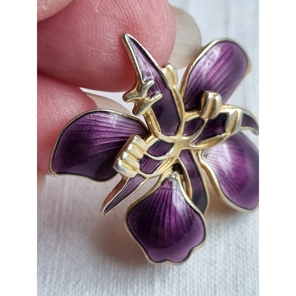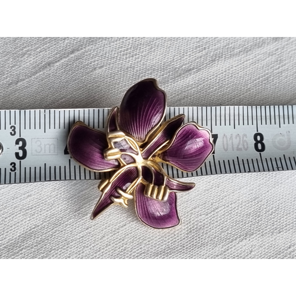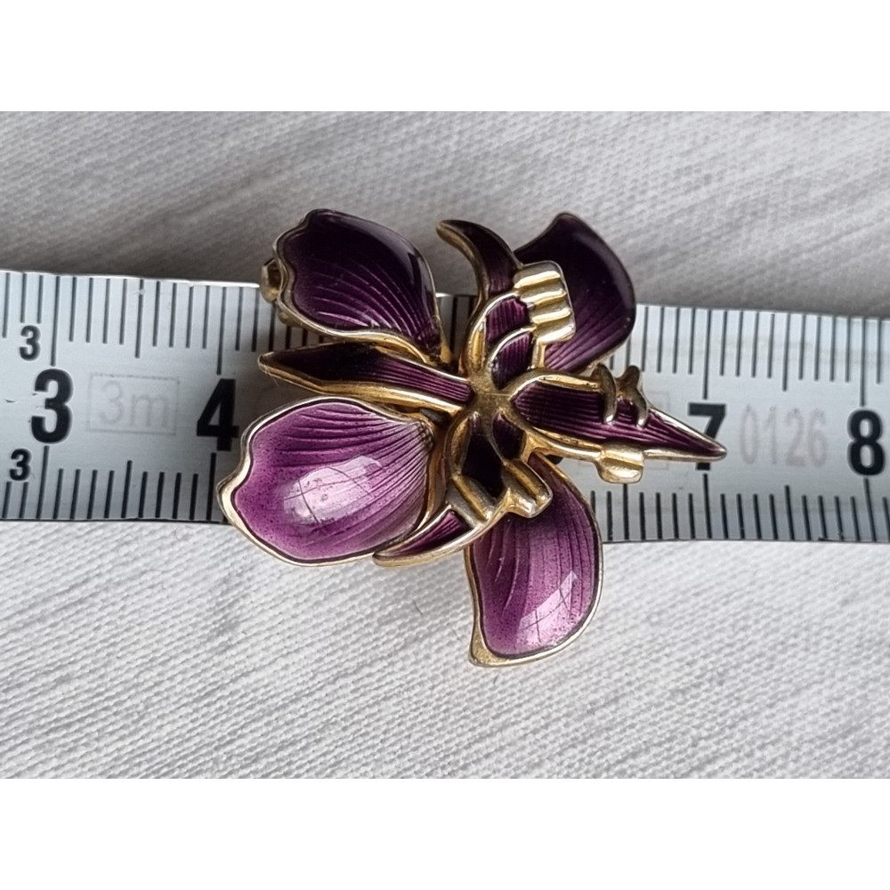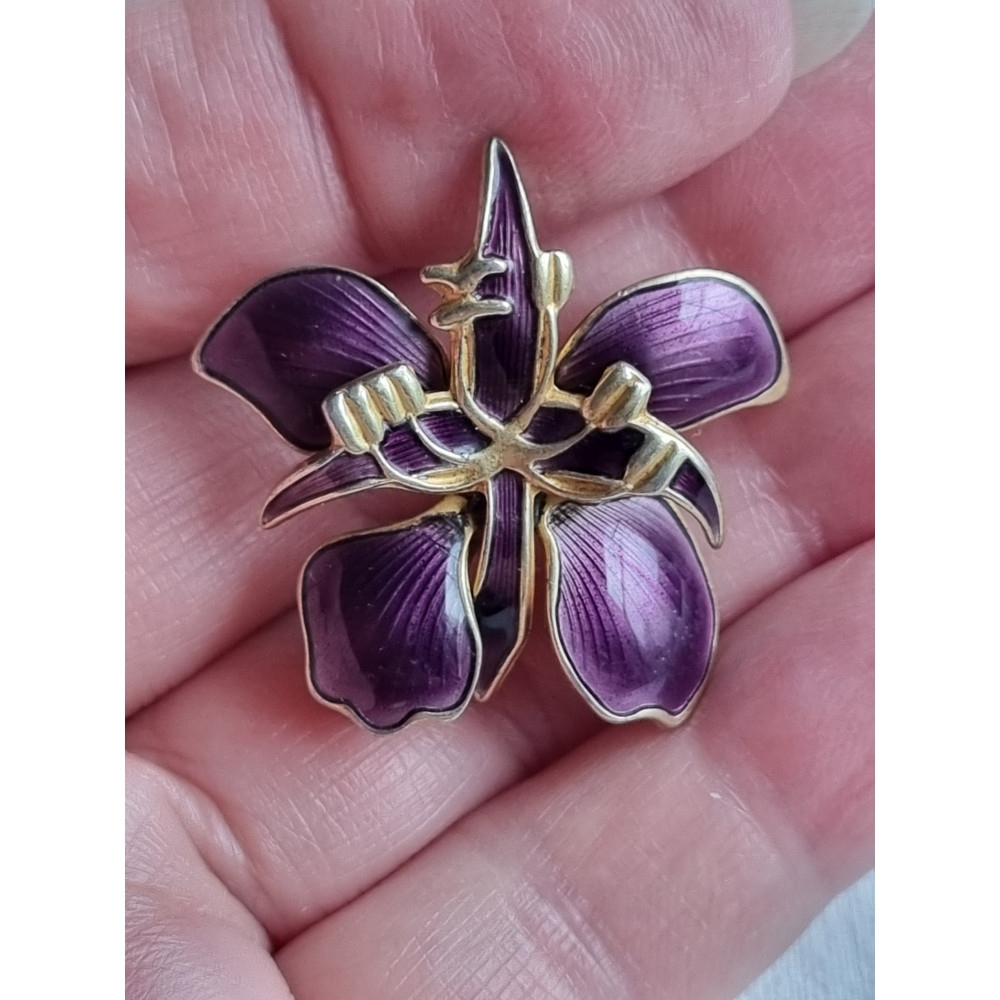 Vakker sølv emalje blomst, nydelig lilla emalje. Gullforgylt bakside og som ramme i front.