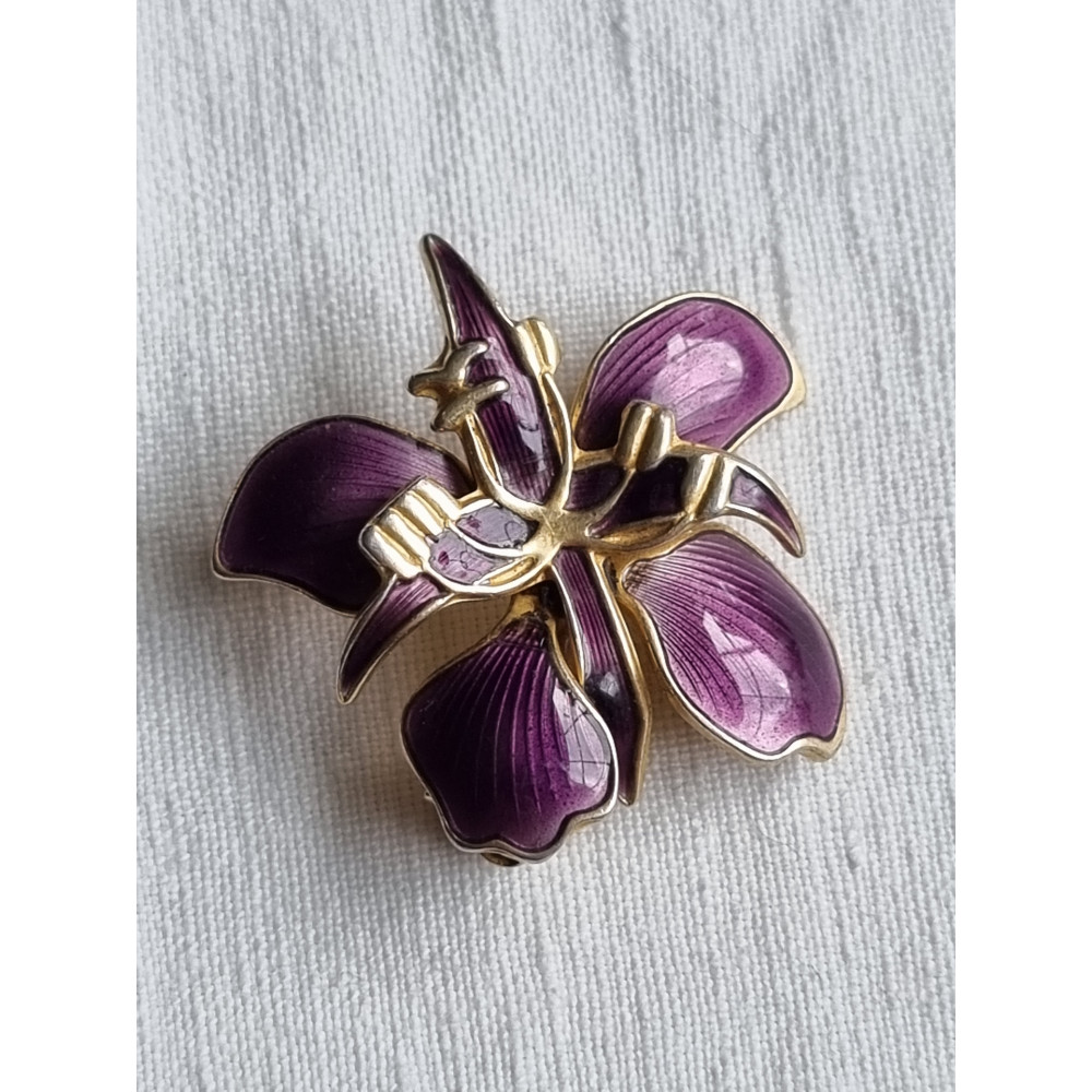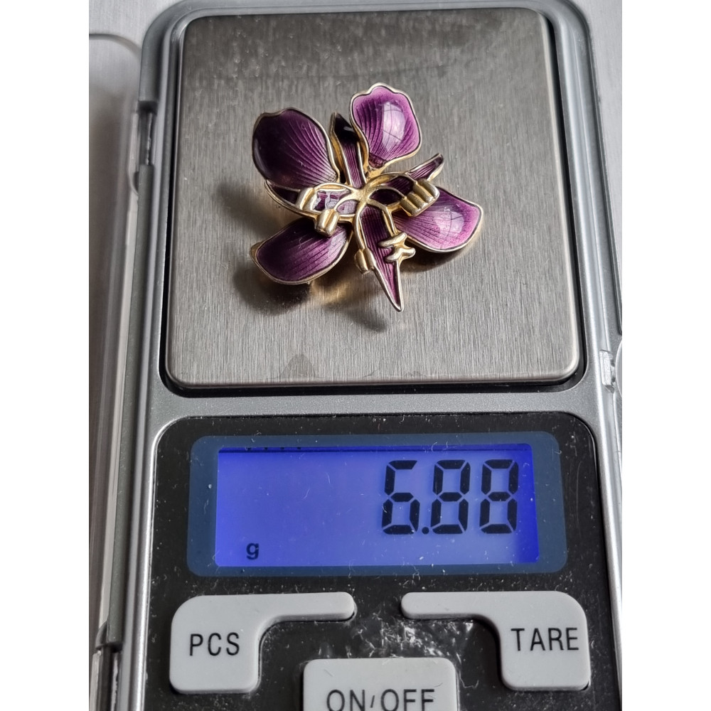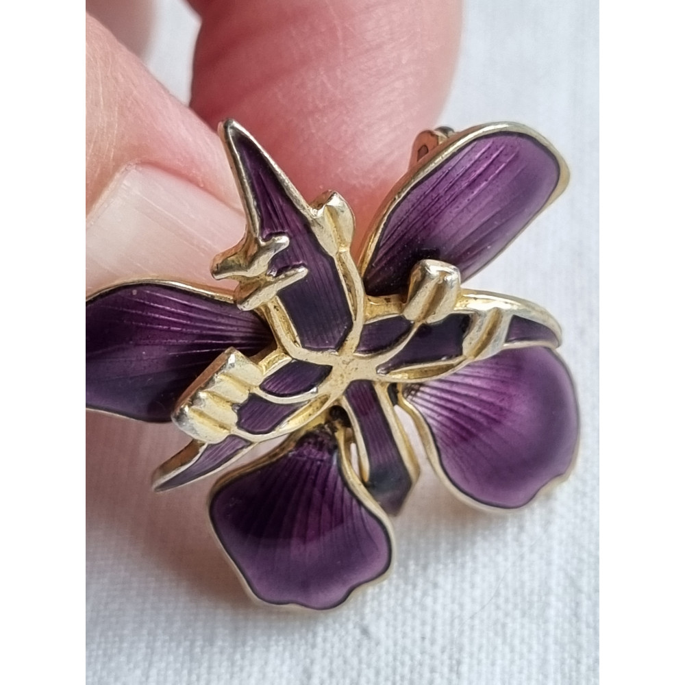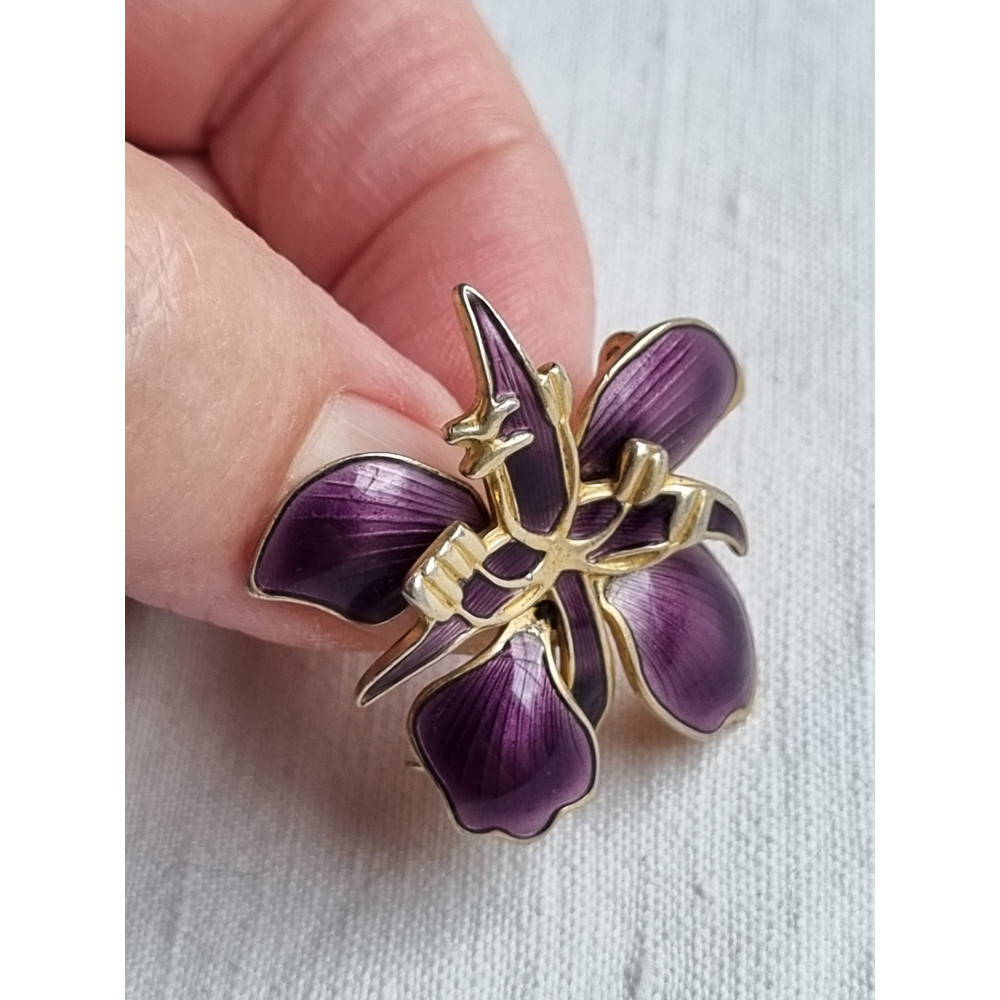 Vakker sølv emalje blomst, nydelig lilla emalje. Gullforgylt bakside og som ramme i front.